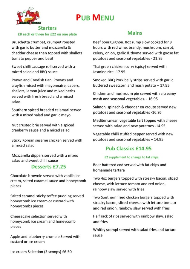 We are a family run pub restaurant with all food made from scratch. We are located in Bicknacre, Chelmsford in Essex